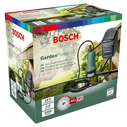 Bosch Akku-Tauchpumpe GardenPump 18 (ohne Akku, 18-Volt-System, im Karton) 25 m, Classic Green